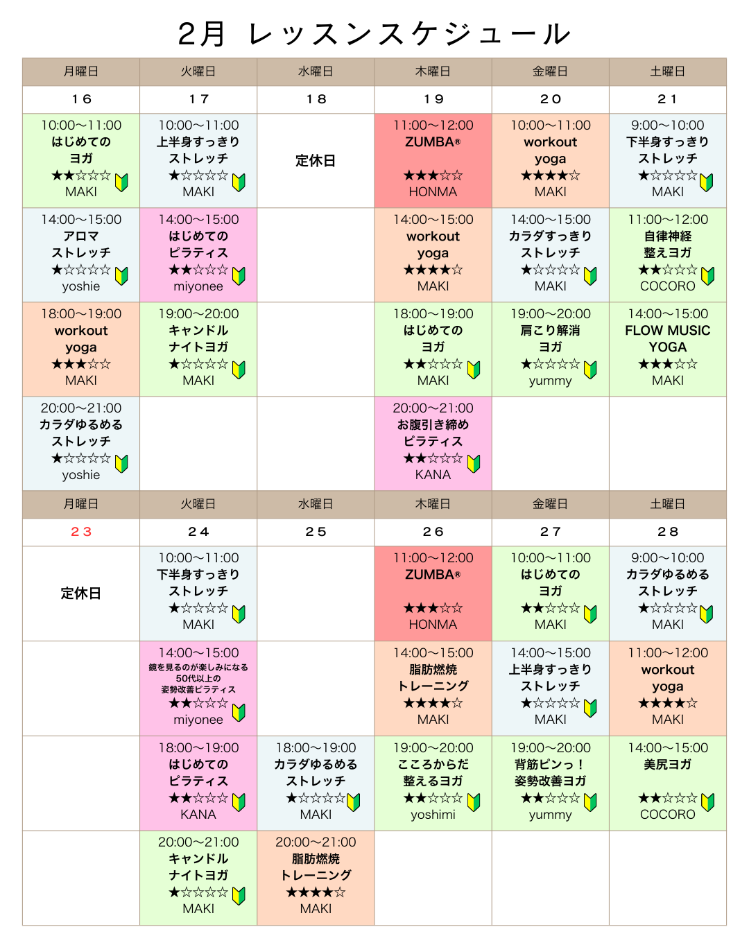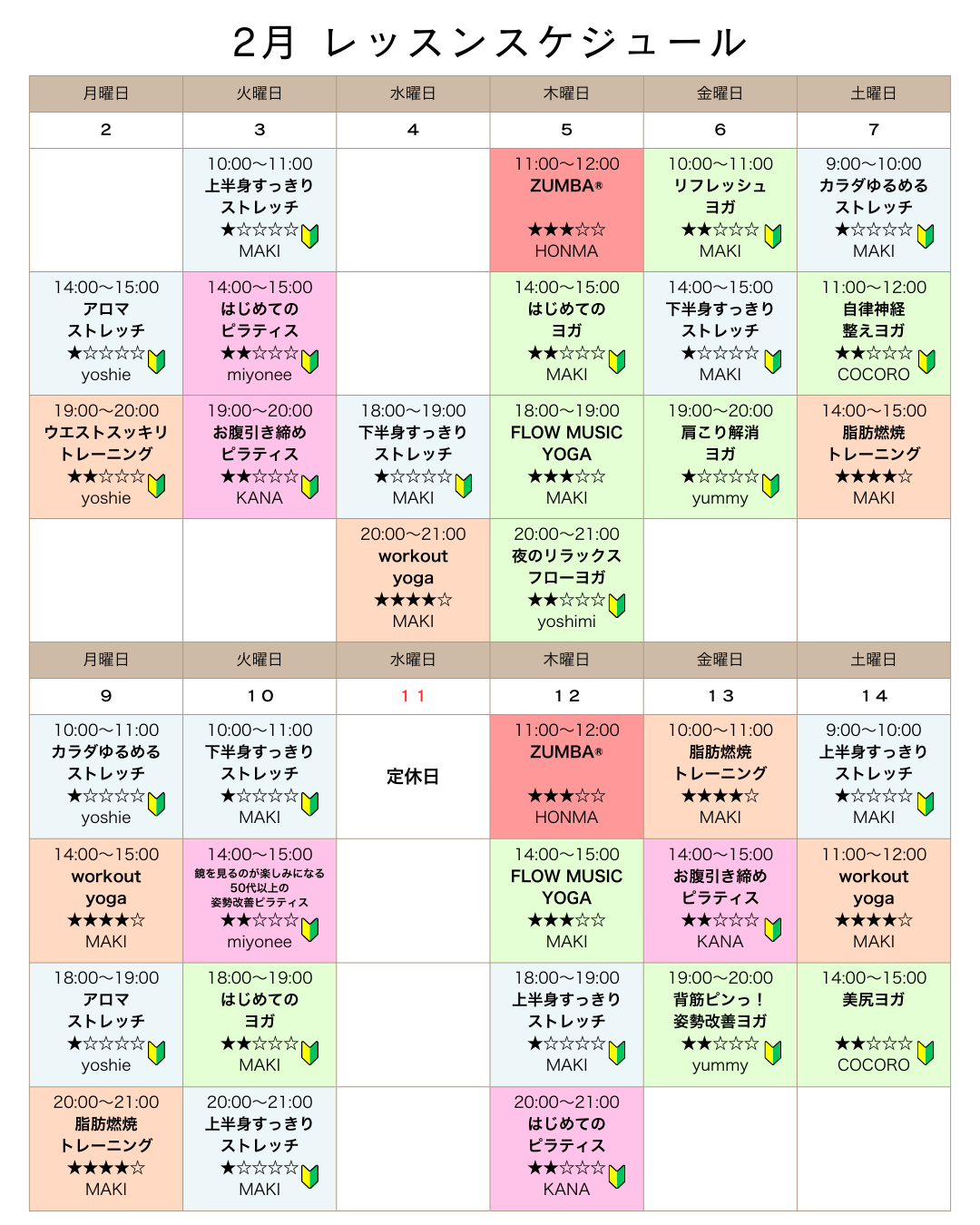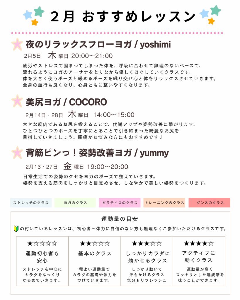 2月 レッスンスケジュールのご案内