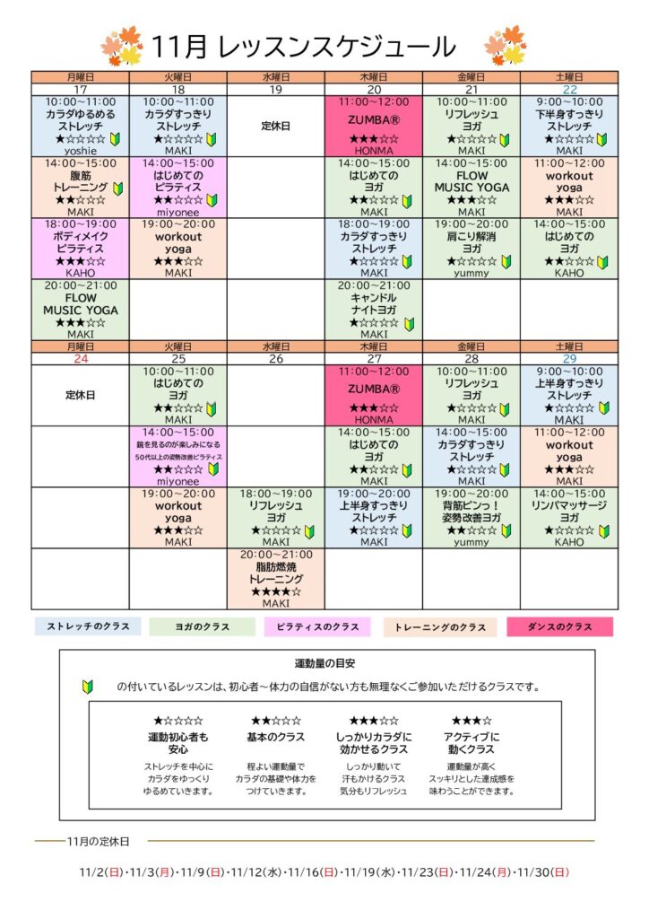 11月 レッスンスケジュールのご案内